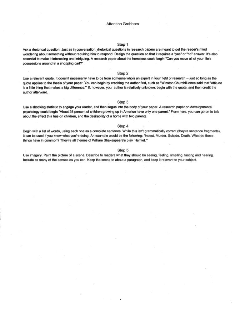 Nss Attention Grabber Worksheet