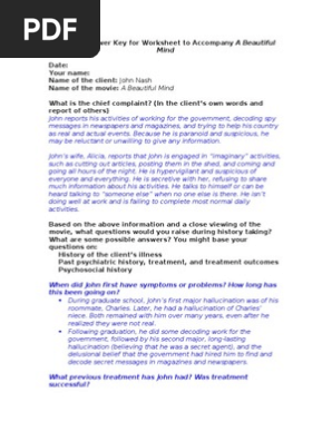 Sample Answer Key For Worksheet To Accompany A Beautiful Mind